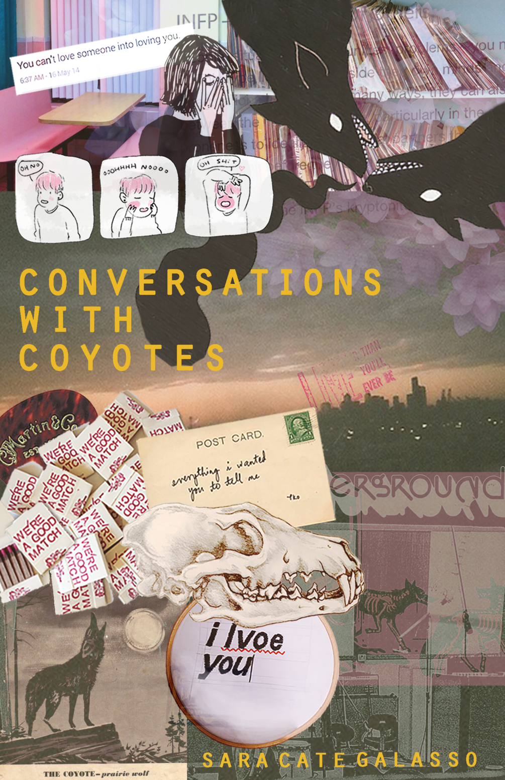 "Conversations With Coyotes" is a digital collage zine I started in 2016 when I was 26, after falling in love with someone I wasn't supposed to. This embarrassingly earnest collection of collages, poems, journal entries and other mixed-media art explores the depths of visceral yearning and wretched heartbreak that come with those brief collisions that last so briefly but stay with you forever. Includes 15 digital collage pages.